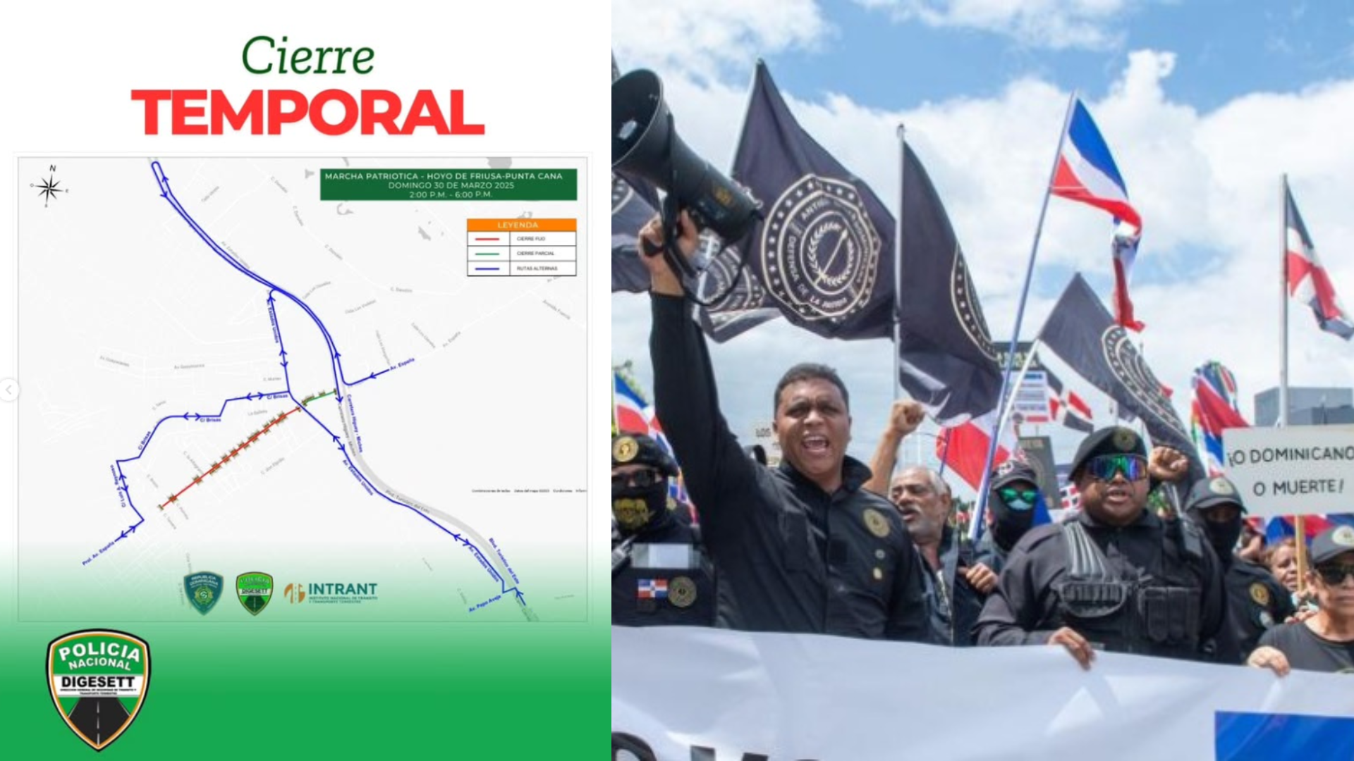Santo Domingo. – La Dirección General de Seguridad de Tránsito y Transporte Terrestre (Digesett) informó que, debido a la realización de una marcha patriótica en Hoyo de Friusa, Punta Cana, se cerrará temporalmente la Prolongación Avenida de España este domingo 30 de marzo, entre las 2:00 PM y las 6:00 PM.