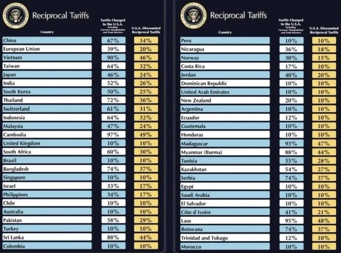 Las reciprocidades establecidas por la administración Trump para países individuales entrarán en vigor a partir del próximo 9 de abril.