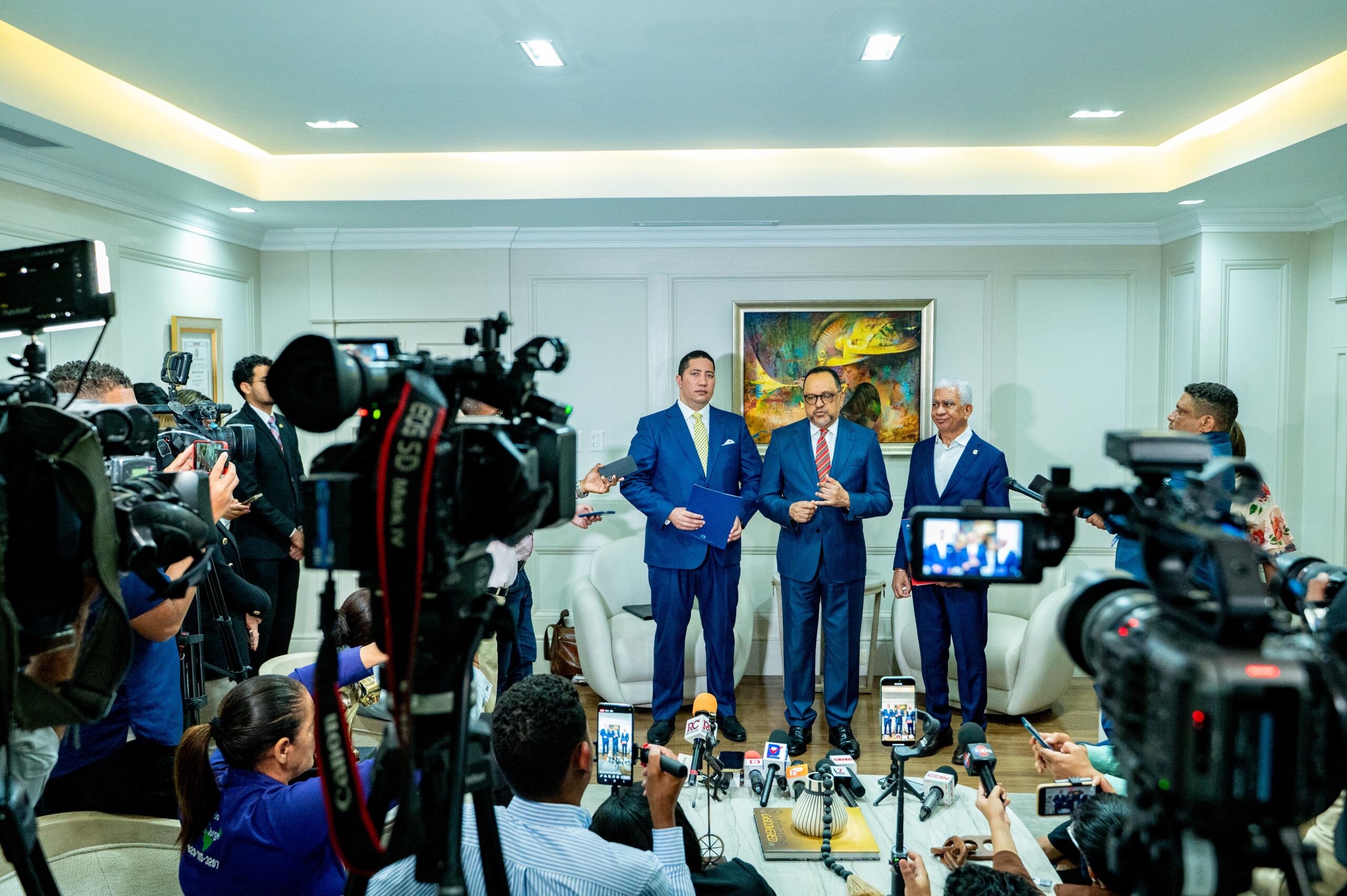 El presidente del Senado, Ricardo de los Santos, recibió en su despacho al consultor Jurídico del Poder Ejecutivo, Antoliano Peralta, quien acudió a depositar un anteproyecto de ley que modifica la Ley 137-03, sobre Tráfico Ilícito de Migrantes y Trata de Personas, remitida por el Poder Ejecutivo, en el marco del anuncio de una serie de medidas presentadas por el presidente Luis Abinader, para incrementar la lucha contra la inmigración irregular.