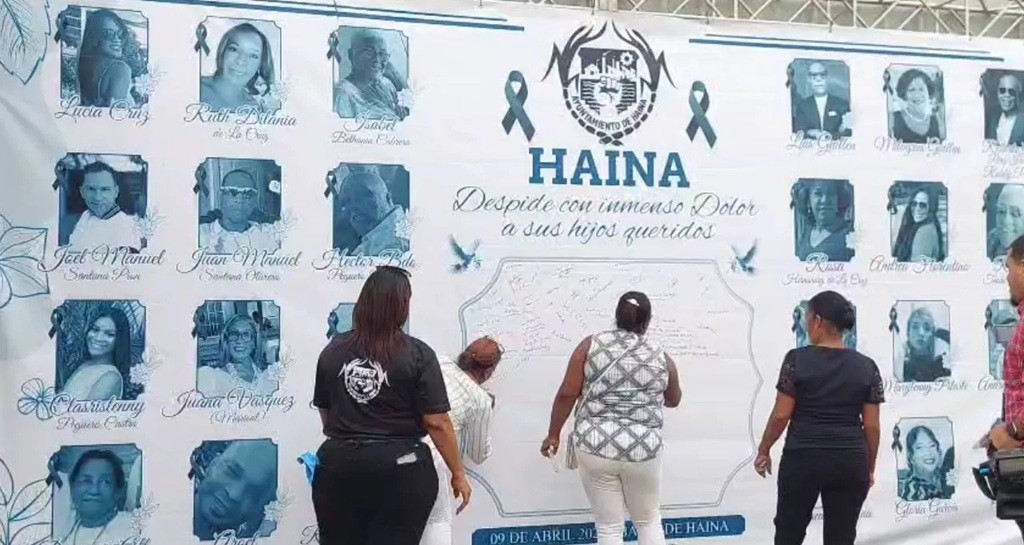 "Haina se despide de sus hijos", se lee en algunas pancartas. Se estima que alrededor de 35 personas de Haina estaban en la discoteca de Jet Set en Santo Domingo.
