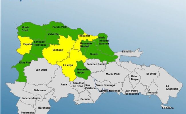 Santo Domingo – La Dirección del Centro de Operaciones de Emergencias (COE) informó este jueves que, debido a las condiciones meteorológicas actuales, se han emitido alertas de nivel verde y amarillo para varias provincias del país.