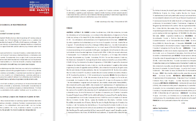 A través de un comunicado, las organizaciones recordaron que “el 17 de abril de 2025 se cumplen 200 años de la orden impuesta por Francia para que Haití pagara una indemnización de 150 millones de francos oro a cambio del reconocimiento de su independencia, luego de 21 años de bloqueos y embargos”.
