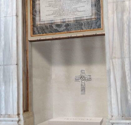 Este sepulcro se encuentra entre la Capilla Paulina, la Capilla de la Salus Populi Romani y la Capilla Sforza, cerca del Altar de San Francisco, de quien tomó su nombre al asumir el pontificado en 2013.