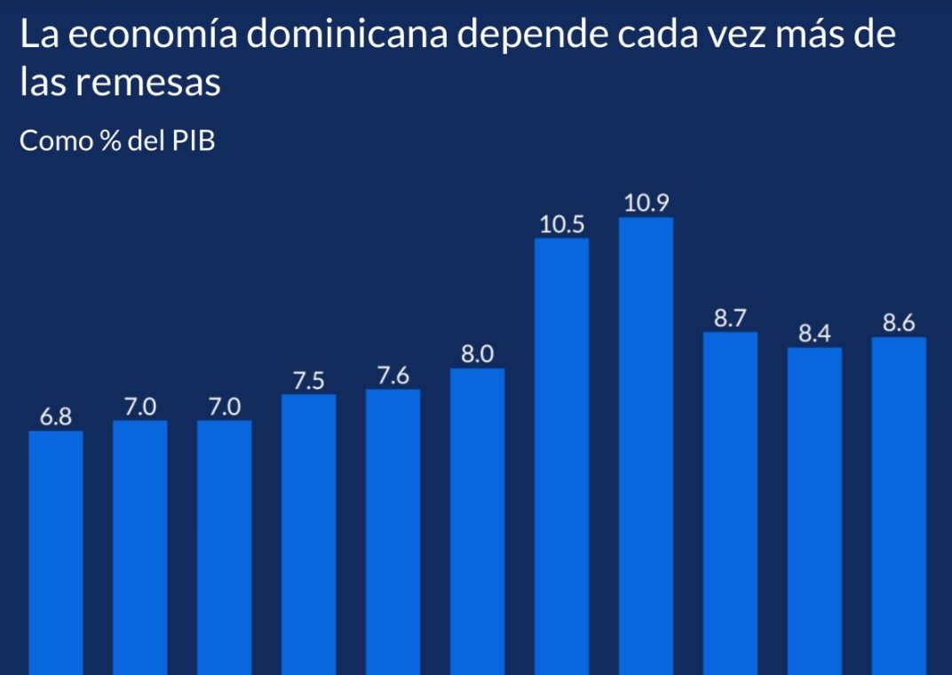 Santo Domingo, RD.- Existe una tendencia en la economía dominicana a depender en gran medida del envío de remesas por parte de los dominicanos que residen en el extranjero.