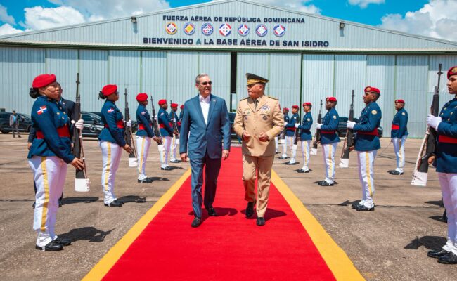 El mandatario partió a las 10:52 de la mañana desde la Base Aérea de San Isidro, donde fue despedido por el ministro de Defensa, teniente general Carlos Antonio Fernández Onofre; el comandante de la Fuerza Aérea, mayor general piloto Floreal T. Suárez Martínez; y los comandantes de la Guardia Presidencial, general de brigada Guillermo Caro Cruz, y del Regimiento de la Guardia de Honor, teniente coronel Paula Fernández Jiménez.