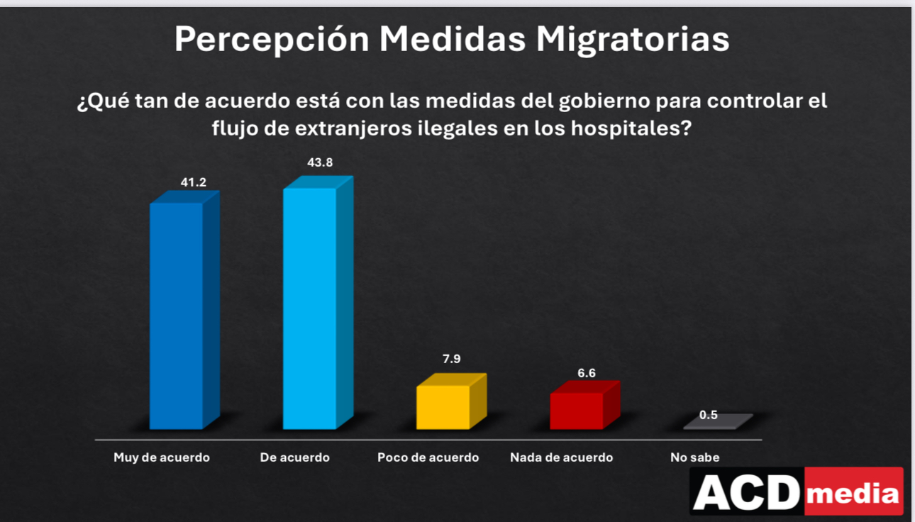 La firma ACDmedia también quiso conocer la percepción de los ciudadanos en torno a las medidas migratorias, contestando el 86% que está de acuerdo con las medidas adoptadas por el Gobierno para controlar el flujo migratorio.