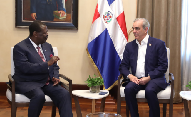 Santo Domingo.- El presidente Luis Abinader, recibió en horas de la tarde de este martes en el Palacio Nacional una visita de cortesía de Musalia Mudavadi, canciller y primer secretario del gabinete de la República de Kenia.