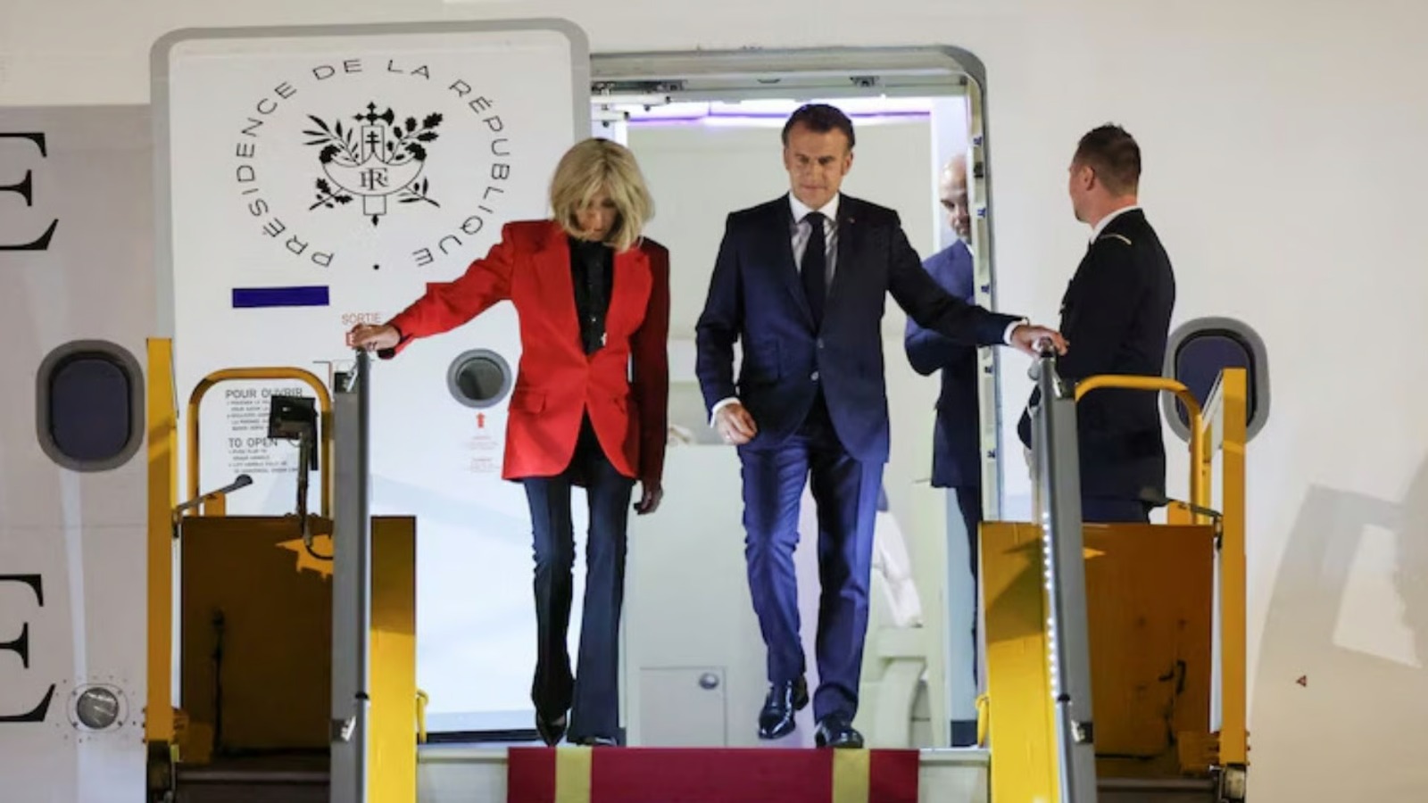 Macron, visiblemente sobresaltado, tardó apenas unos segundos en recomponerse y ofreció un saludo breve hacia el exterior. Sin embargo, acto seguido volvió a ocultarse tras el fuselaje del avión, lo que impidió ver su expresión facial o reacciones posteriores.
