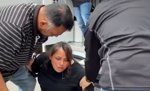 El horror está ante sus ojos, y no lo puede evitar. La mujer es latinoamericana y está en el suelo, abatida y angustiada, mientras los agentes migratorios le echan mano y la suben al vehículo de Migración.