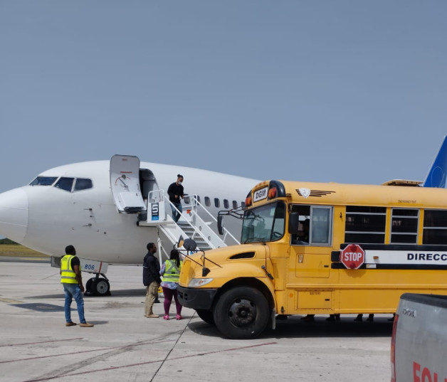 Tras su llegada, los repatriados fueron trasladados en autobús oficiales al Centro de Acogida Vacacional de Haina, donde se realizan los procesos de identificación, evaluación psicológica, y reintegración social.