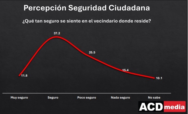 El 11.8 por ciento de los ciudadanos encuestados afirma que se sienten muy seguros en sus vecindarios, mientras que otro 37.2 por ciento declara sentirse seguros.