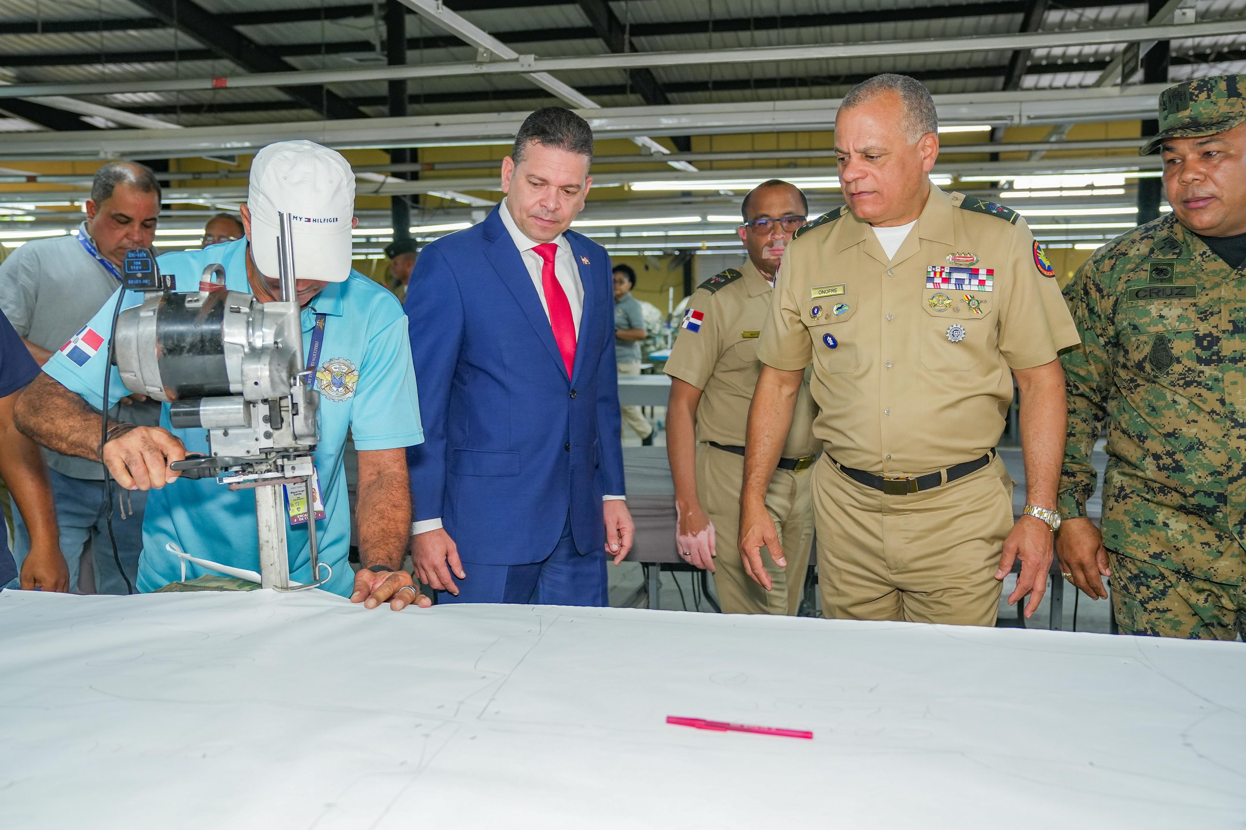 Durante el recorrido, el alto mando militar estuvo acompañado por el director general del Centro de Desarrollo y Competitividad Industrial (Proindustria), señor Luis Cruz, con quien evaluó los trabajos en marcha orientados a incrementar en más de un 125 % la capacidad de producción de tejidos.