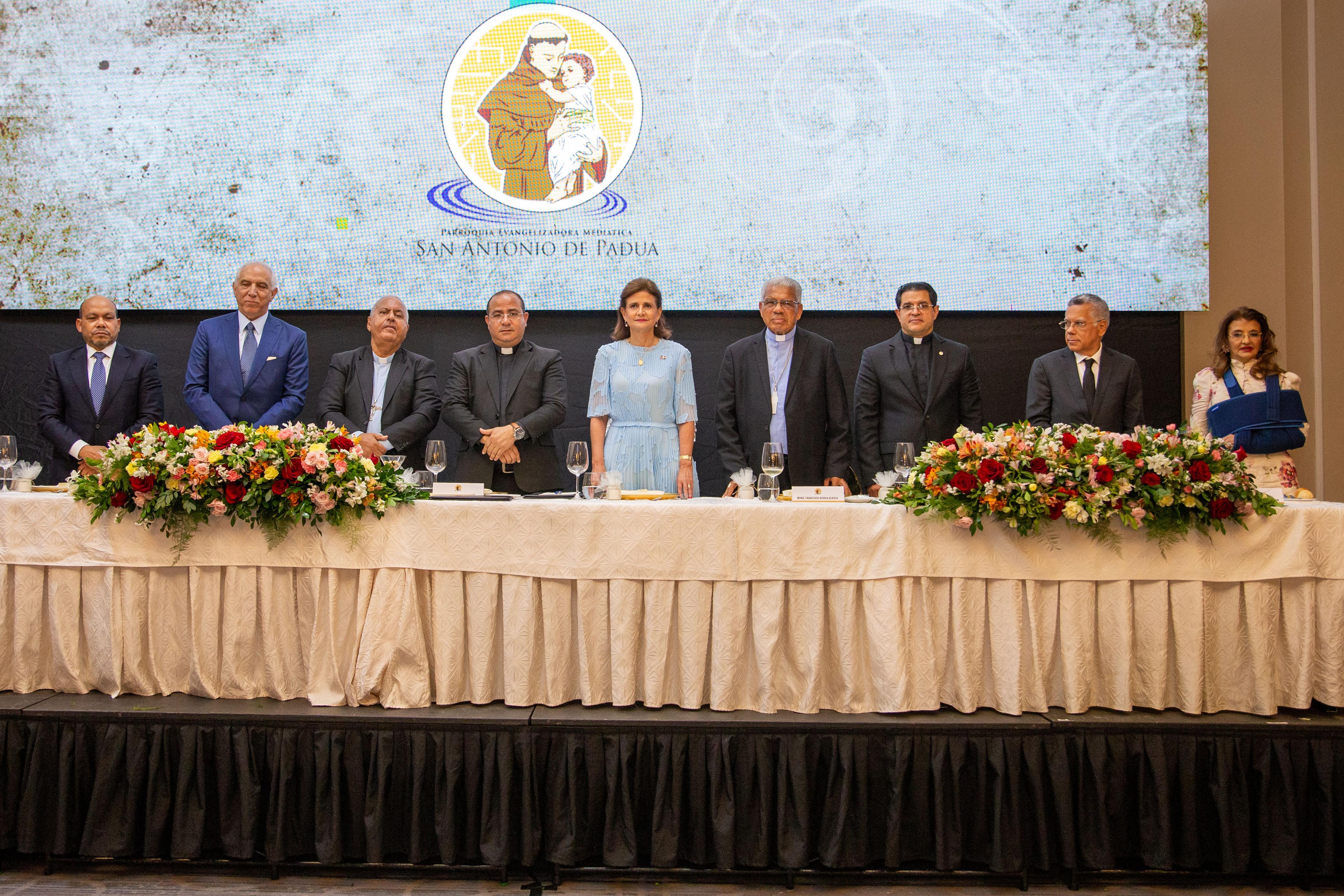 En la Cena de Gala Empresarial de la Confraternidad de San Antonio de Papúa también estuvieron presentes el monseñor Francisco Ozoria, Arzobispo Metropolitano de Santo Domingo; monseñor Benito Angeles, Obispo Emerito de la Arquidiócesis de Santo Domingo; Luis Valdez, director general de Impuestos Internos; el padre Secilio Espinal, rector de la Pontificia Universidad Madre y Maestra; Manuel Valentin, presidente del Patronato de la Parroquia San Antonio de Padúa; Ramón Tallaj, fundador de SOMOS Community Care y Fundación Tallah; entre otras personalidades.