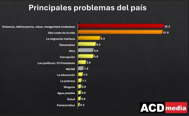 El 32.3 por ciento de los entrevistados para la investigación especifica que la violencia, la delincuencia, los robos y la inseguridad ciudadana constituyen los principales males que afectan al país.