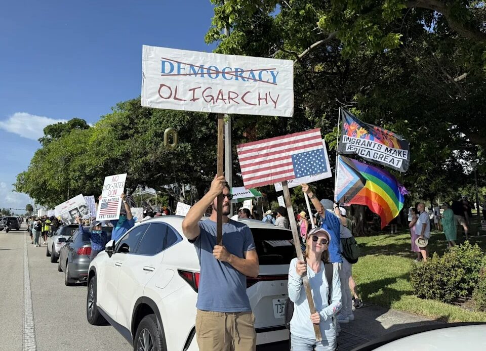 Aunque Trump se encontraba en Washington, los manifestantes consideraron simbólico manifestarse frente a su mansión. Partieron desde el parque Phipps Skatepark —a dos kilómetros de Mar-a-Lago— y llegaron sin incidentes hasta las cercanías de la residencia.