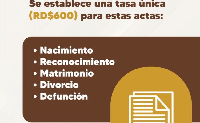 Se fijó un pago de 600 pesos para la emisión de las actas de nacimiento, de reconocimiento, matrimonio, divorcio y defunción.
