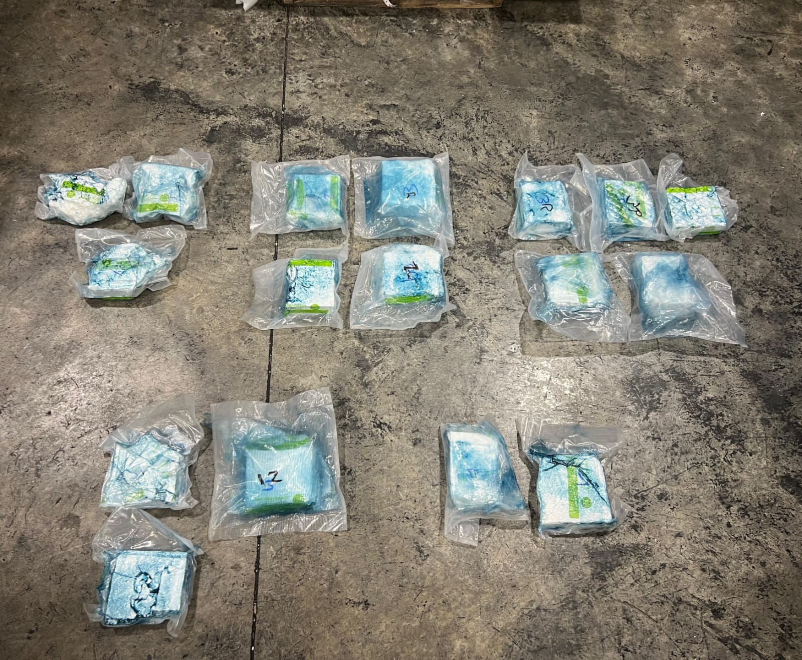 Siguiendo las instrucciones del fiscal, las autoridades procedieron a abrir cinco cajas, encontrando en su interior 17 paquetes de la sustancia ilícita, cuidadosamente camuflados en fundas plásticas transparentes.
