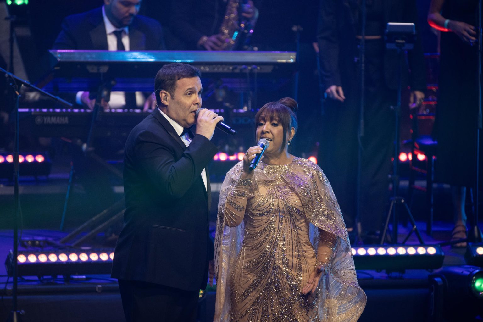 En un Teatro Nacional lleno y que en abril acogió su capilla ardiente, la noche comenzó con Rubby Pérez recreado por inteligencia artificial interpretando uno de los últimos temas que dejó grabados, el clásico ‘O sole mio’, junto a Rodhen Santos, quien salió al escenario acompañando a la trompeta al merenguero, junto a una orquesta de una treintena de miembros dirigida por Manuel Tejada y en la que no faltaron la tambora, la güira o la conga.