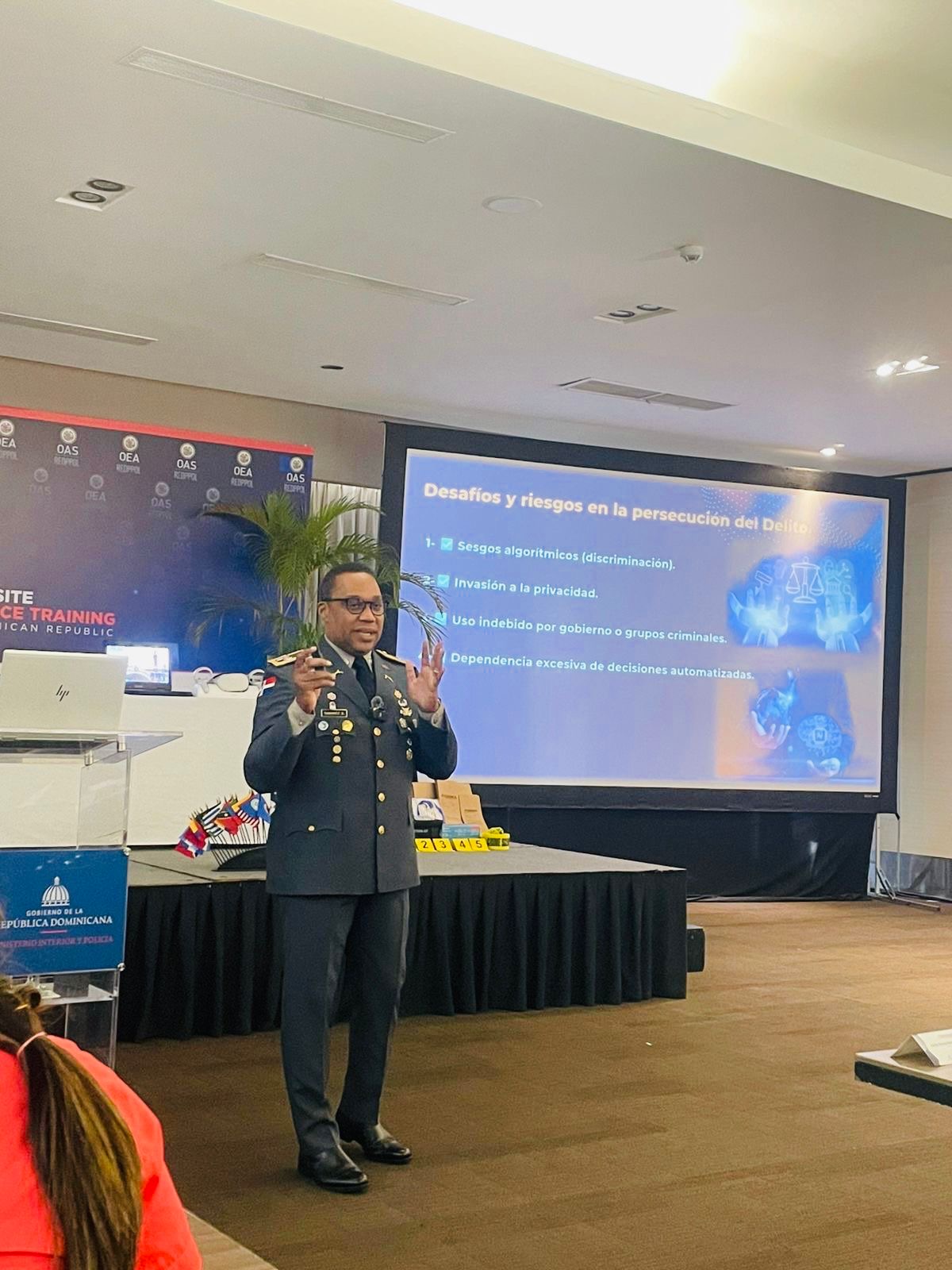 El oficial superior dominicano explicó, ante representantes de más de 25 países miembros de la Organización de los Estados Americanos (OEA), cómo las instituciones policiales de la región podrán incorporado inteligencia artificial para fortalecer áreas clave como la investigación criminal, el patrullaje inteligente y la gestión de bases de datos criminales.
