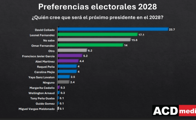 Santo Domingo. – El actual ministro de Turismo, David Collado, encabeza las preferencias del electorado de cara a las elecciones presidenciales de 2028, de acuerdo con los resultados de la más reciente encuesta publicada este miércoles 16 de julio por la firma ACDMedia.