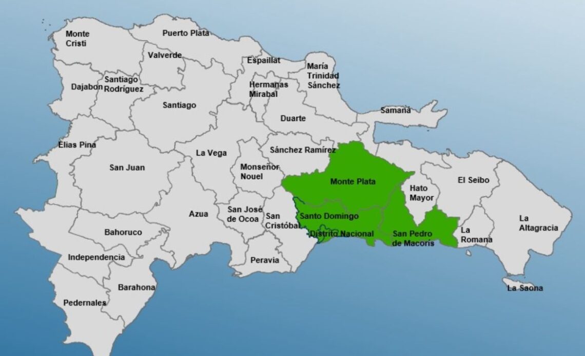 El Centro de Operaciones de Emergencias (COE) colocó en alerta verde al Distrito Nacional, la provincia Santo Domingo, San Pedro de Macorís y Monte Plata, producto del incremento de la humedad, producto de una onda tropical que avanza hacia el pais y actualmente se generan chubascos dispersos hacia La Altagracia, El Seibo, Hato Mayor y La Romana.
