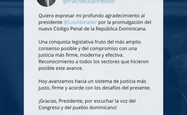 “Hoy damos un paso hacia un sistema judicial más firme y ajustado a las necesidades actuales. Agradezco al presidente por atender la voz tanto del Congreso como del pueblo dominicano”, afirmó.