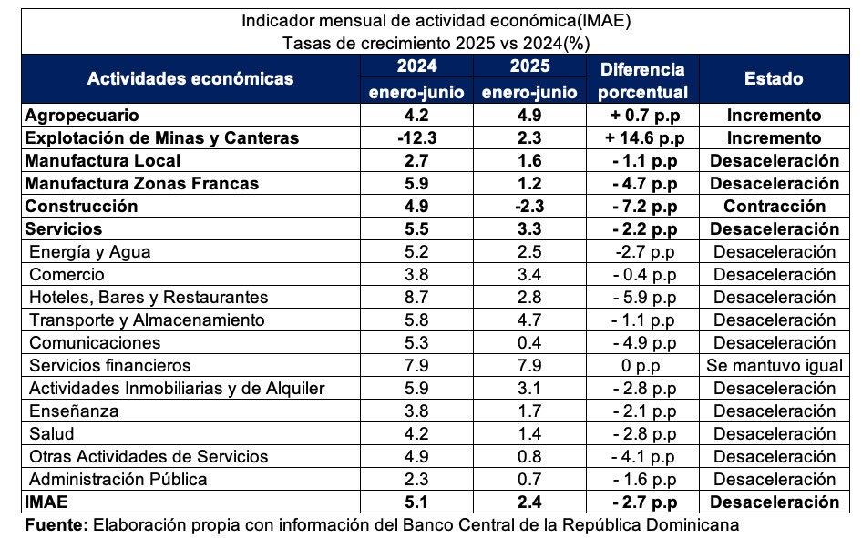Santo Domingo.- La economía dominicana presenta una “desaceleración generalizada”, que se observa en casi la totalidad de los sectores económicos, lo que podría desmoronar las proyecciones de crecimiento para el 2025.