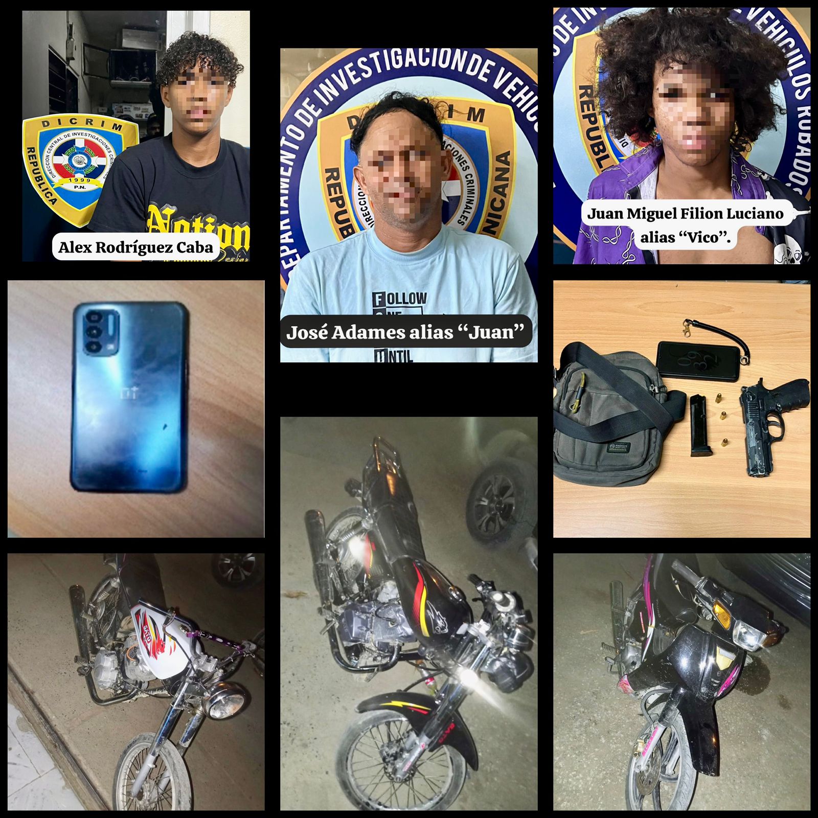 Tras su arresto, Filion Luciano confesó pertenecer a una estructura delictiva que operaba junto a dos individuos identificados como “Hueso” y “Rubio” —actualmente prófugos—, y Alex Rodríguez Caba, quien también fue capturado y a quien se le encontró un celular robado durante uno de los asaltos.
