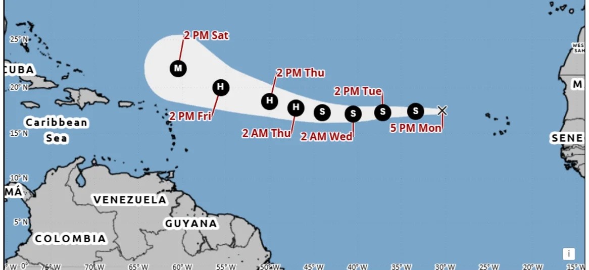 El movimiento se desplaza hacia el oeste a 35 kilómetros por hora, con un posible giro hacia el oeste-noroeste, según el Centro Nacional de Huracanes de los Estados Unidos.