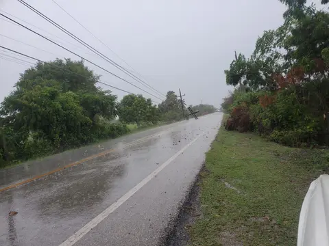 Un tornado acompañado de fuertes lluvias provocó este jueves la caída de varios postes del tendido eléctrico en la carretera que conecta San Juan de la Maguana con Las Matas de Farfán, específicamente en la comunidad de Pajonal, municipio de Las Matas de Farfán.