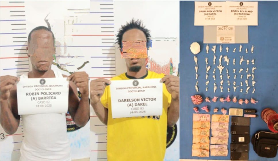 Los detenidos son Robin Policard (a) Barriga y Darelson Víctor, residentes en la referida comunidad, quienes fueron sorprendidos en la vivienda allanada con la citada evidencia.
