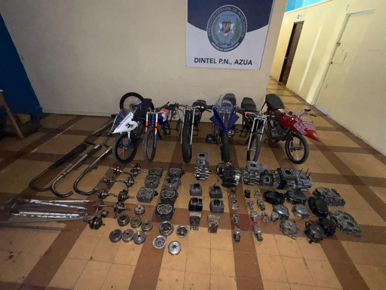 Azua, RD.- La Policía Nacional, a través de la Dirección Regional Sur Central de Baní y la Subdirección Regional de Inteligencia (DINTEL), en coordinación con la Fiscalía de Azua y la Policía Preventiva, desmanteló una red dedicada a organizar y ejecutar carreras clandestinas. Durante el operativo, se incautaron seis motocicletas modificadas, una pistola ilegal, dinero en efectivo y piezas para la preparación de las motocicletas.