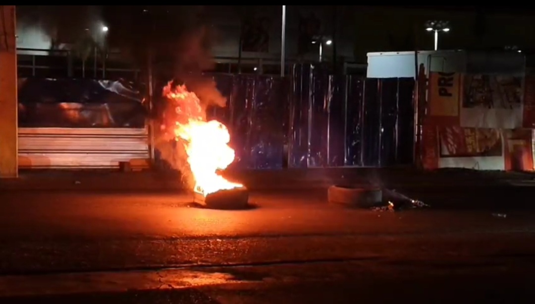 Las imágenes muestran a militares y agentes policiales sofocando el fuego de neumáticos incendiados cerca de la nueva fortaleza, ubicada frente al complejo deportivo Juan Pablo Duarte, en las inmediaciones del estadio de béisbol Julián Javier.