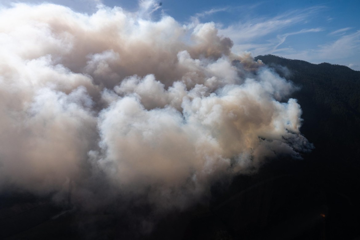 La humareda visible en el área fue desplazada por el viento desde el incendio principal en Loma del Oro, generando confusión.