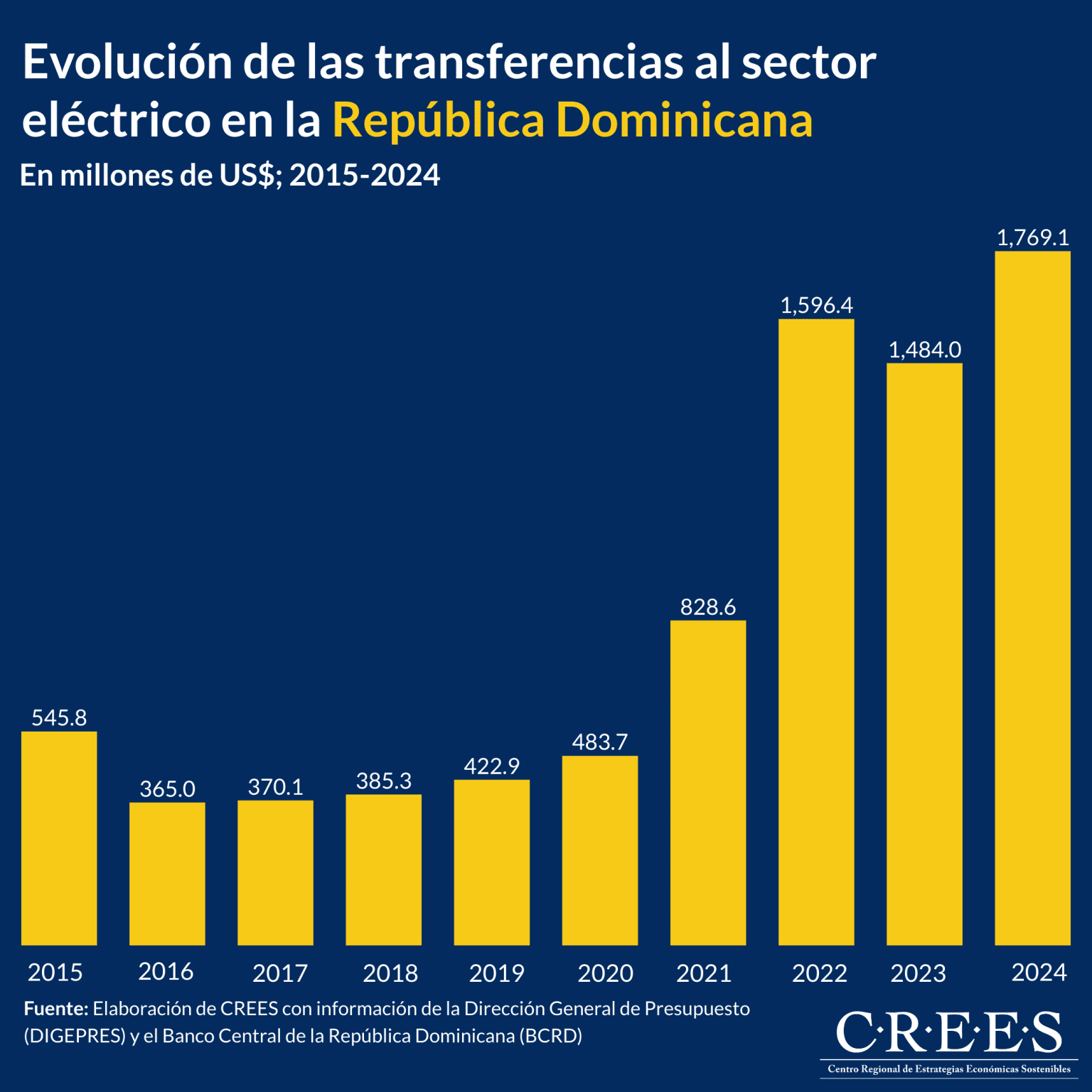 El sector eléctrico continúa siendo uno de los mayores lastres para la economía dominicana. En 2024, el Gobierno transfirió US$1,769 millones a las empresas distribuidoras de electricidad (EDE) para cubrir sus pérdidas, el monto más alto hasta la fecha y uno de los mayores en proporción al producto interno bruto (PIB).