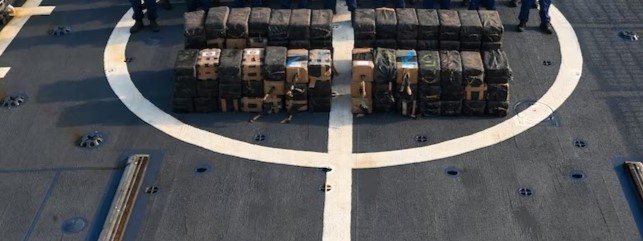 El decomiso se llevó a cabo durante operaciones en el océano Pacífico y en el mar Caribe, y consistió en 75,000 libras de cocaína, unas 34 toneladas.
