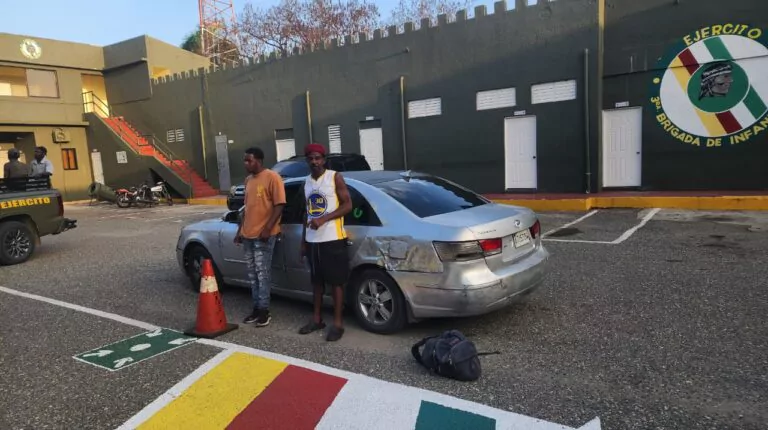 Una patrulla del 12do. Batallón de Infantería de Montaña, ERD, interceptó a Liony Francis Alcántara, quien llevaba al inmigrante haitiano indocumentado, oculto en el baúl de un carro Hyundai Sonata, color gris, placa A715730.