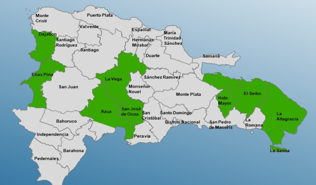 Las provincias bajo vigilancia son: La Altagracia, El Seibo, Hato Mayor, Azua, La Vega, San José de Ocoa, Dajabón y Elías Piña. El organismo advirtió sobre la posibilidad de crecidas de ríos, arroyos y cañadas, así como inundaciones repentinas o urbanas.
