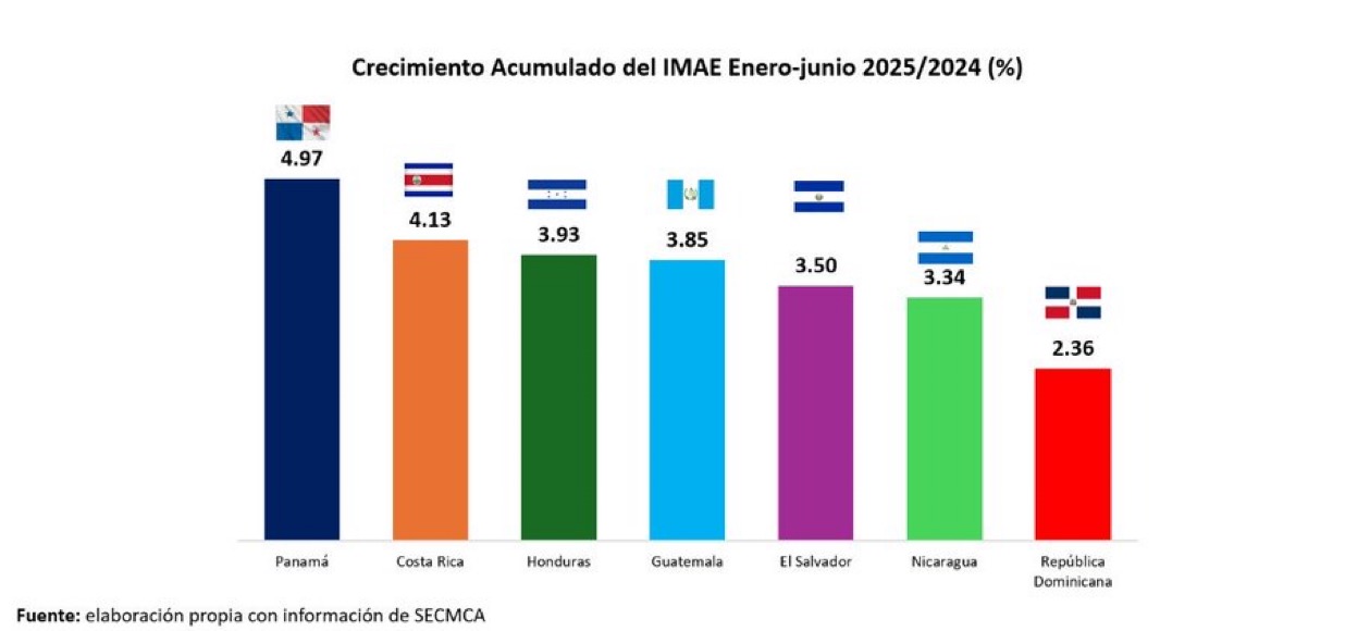 “RD 🇩🇴 después de exhibir elevadas tasas de crecimiento en el pasado, está quedando con el probre desempeño económico a enero-junio 2025 (2.4%) en el último lugar frente a sus competidores Centroamericanos. RD es superado por todos los países, siendo Panamá 🇵🇦 más del doble 🇩🇴”, publicó Mercedes Carrasco.