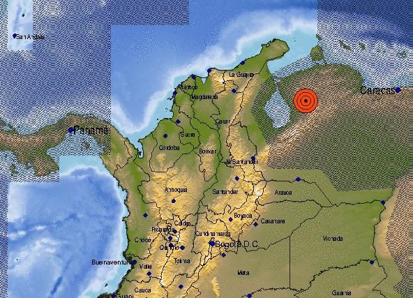Según el Servicio Geológico Colombiano, el temblor ocurrió a las 17:21 hora local de Colombia (22:00 GMT), a una profundidad superficial con epicentro en Mene Grande, en el estado venezolano de Zulia, fronterizo con Colombia, y doce minutos después hubo una réplica de magnitud 4,3.