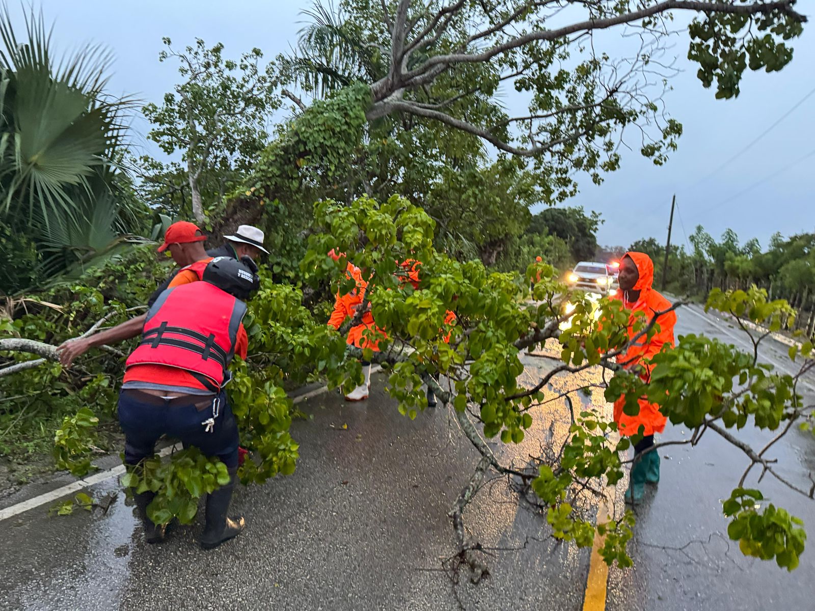 Otra de las provincias donde se reportan incidencias es La Altagracia, donde un equipo de la Defensa Civil, en coordinación con la gobernadora local, Daysi D’Oleo, trabajó en la remoción de escombros dejados por algunos árboles caídos en vías importantes.