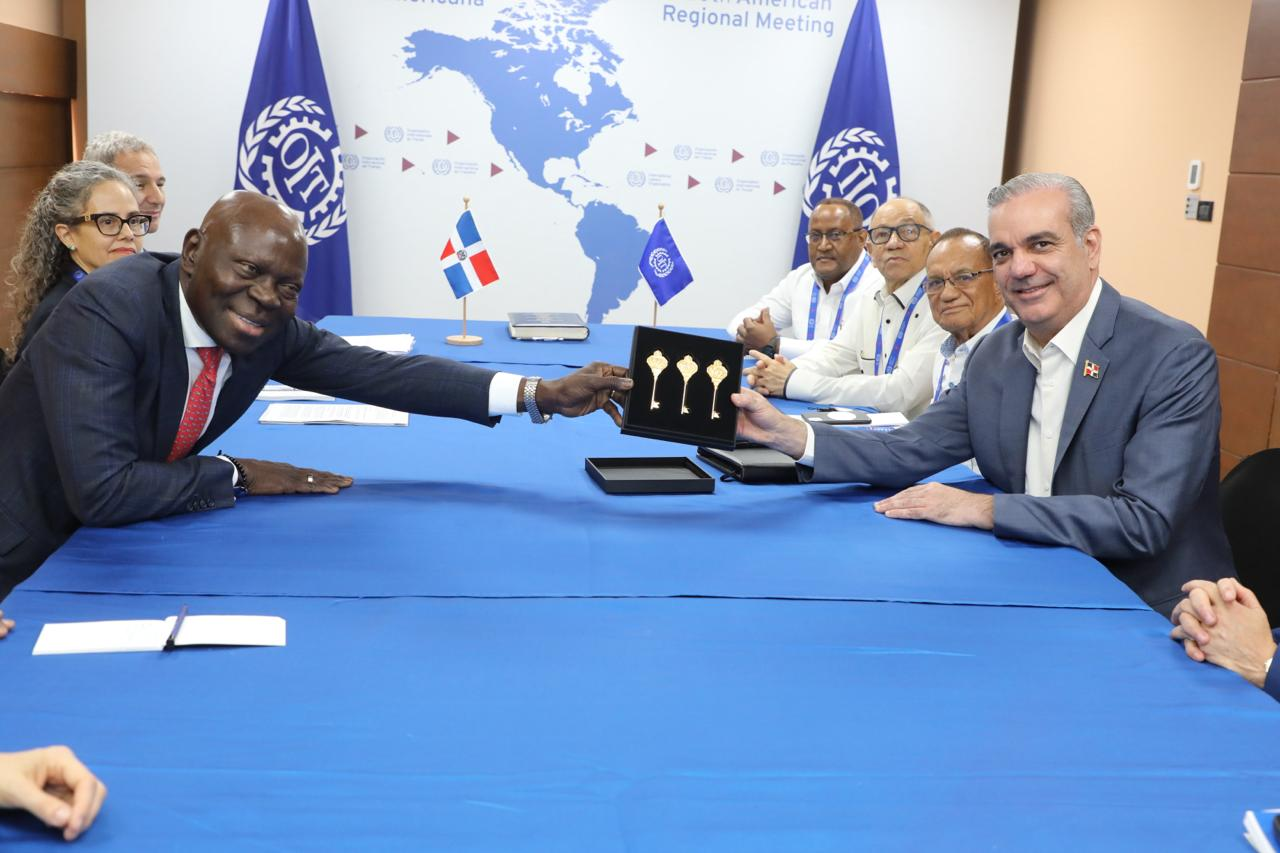 Houngbo resaltó que el mandatario dominicano es pionero en la promoción de la justicia social y el diálogo social, principios que forman parte de la esencia de la misión de la OIT, al tiempo que reconoció los esfuerzos de su gobierno por crear un entorno favorable para que las empresas sostenibles puedan surgir y prosperar.