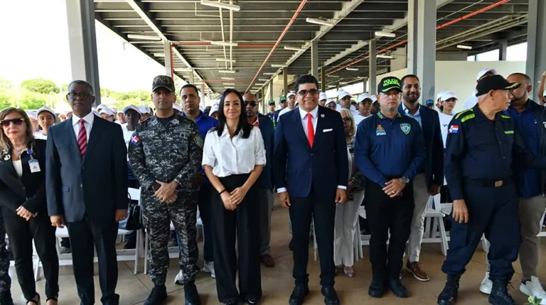 La ministra de Interior y Policía, Faride Raful y el alcalde de Santo Domingo Este, Dío Astacio, dieron inicio al proceso de entrenamiento de 80 jóvenes aspirantes a Policías Auxiliares, en el marco de un programa que busca fortalecer la seguridad ciudadana y el trabajo conjunto con la Policía Municipal en el referido municipio.