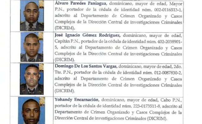 La acusación está contenida en el expediente del Ministerio Público contra los policías Alvaro Paredes Panlagua, José Ignacio Gómez Rodríguez, Domingo De Los Santos Vargas, Yohandy Encamación, Geyser Francisco Álvarez Rodríguez, Adrián Miguel Villalona Pineda, Hansel Michel Cuevas Carrasco, Sócrates Fidel Feliz Feliz, Hairo Mateo Morillo, Cesar Augusto Martínez Trinidad y José Octavio Jiménez Peña.