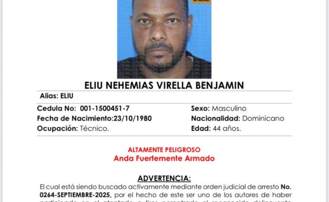 Los tres prófugos cuentan con órdenes judiciales de arresto: No. 0263-SEPTIEMBRE-2025, contra Rurzon Enrique Gutiérrez Jiménez (a) Rurzon; No. 0264-SEPTIEMBRE-2025, contra Eliu Nehemías Virella Benjamín (a) Eliu; No. 0265-SEPTIEMBRE-2025, contra Jordan Manuel Melo Peguero (a) Jordan.