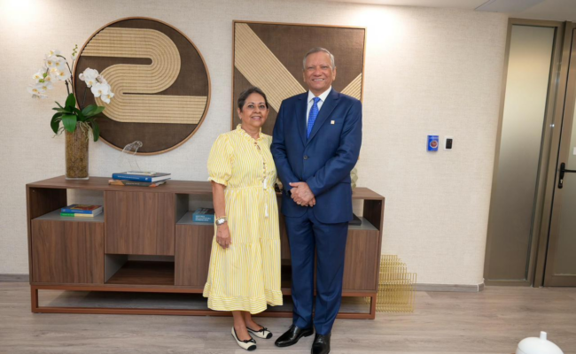 El doctor Aguilera fue recibido por la presidenta del Voluntariado, doctora Carmen Alicia Quijano de Aguilera, con quien conversó sobre los proyectos en ejecución y las iniciativas que impactan positivamente a miles de familias en distintas comunidades.
