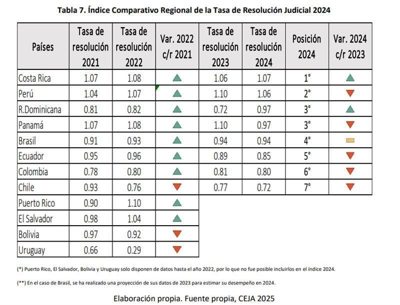 El informe señala que “solo Costa Rica y República Dominicana registraron una variación positiva en su tasa de resolución entre 2023 y 2024.” Aunque también recuerda la necesidad de seguir realizando reformas estructurales que permitan una mejora sostenida a nivel regional.