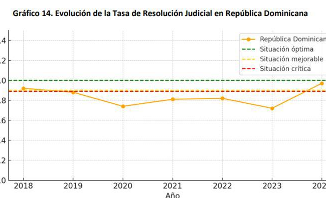 Efectivamente, el informe el documento también proyecta que, para el año 2030, República Dominicana podría alcanzar una tasa de resolución de 1.38, lo que la convertiría en líder regional en eficiencia judicial.