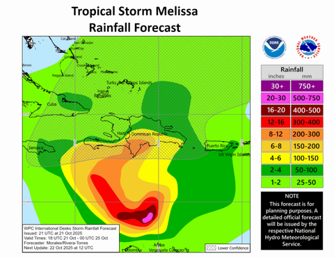 Tormenta tropical Melissa amenaza con fuertes lluvias de 5 a 10 pulgadas