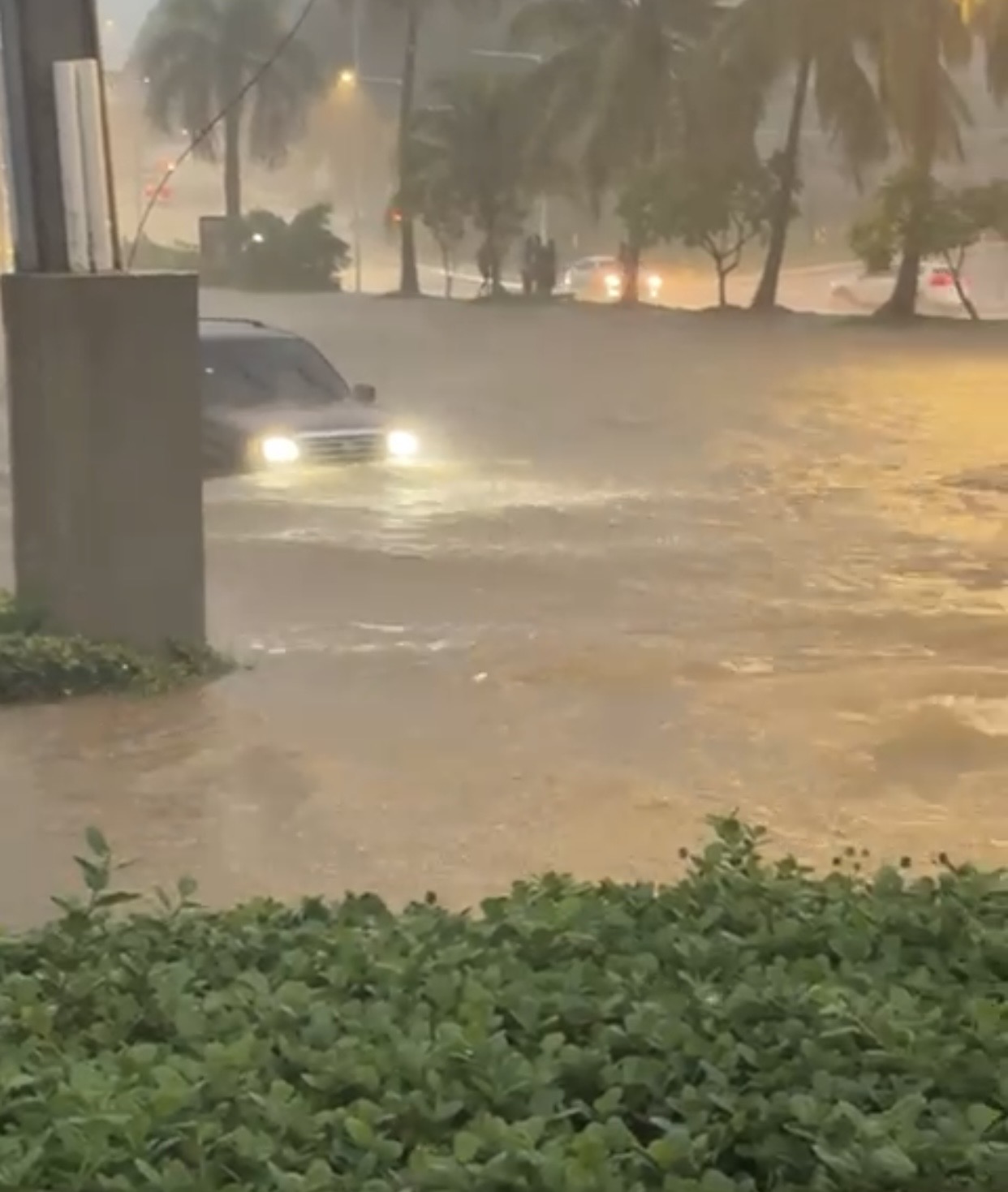 “Entrada del residencial Colinas III totalmente inundada”, expresa un ciudadano en un video.